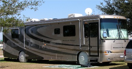 Across from us we have a 2002 Dutch Star that looks just like Mike's and there is this small Airstream trailer just up the way, we love the variety Escapees have in RVs.: