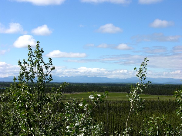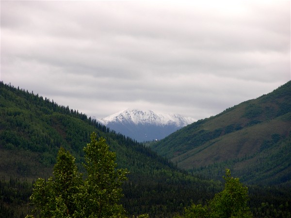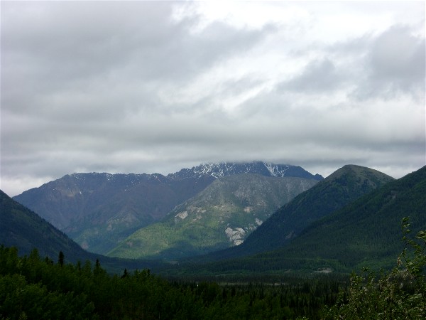 The 86 mile drive to Tok on the 24th had some scenic spots, but the clouds were keeping us from seeing most of the mountains. The road was better than the last miles in Canada, but there were still frost heaves.