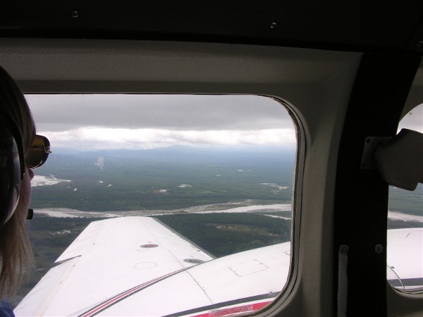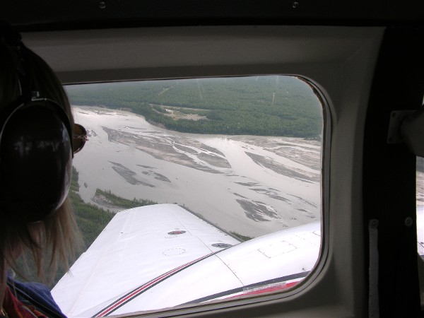 Reports earlier in the morning were that Mount McKinley was visible, by the time we got to it the cloud cover was complete. Our flight was aborted and we turned back. Another river view: