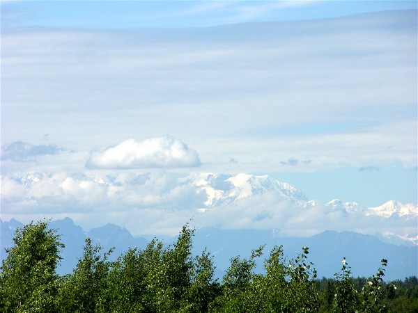 Talkeetna has a nice viewpoint for Mount McKinley, but it was mostly under clouds. At least this picture was not through the windshield: