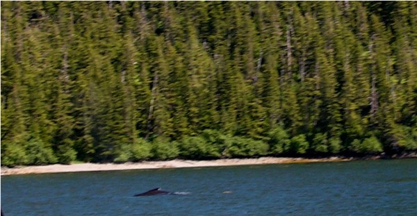 A humpback whale on the way to Mears Glacier. It breached a couple times, but we didn't get a picture: