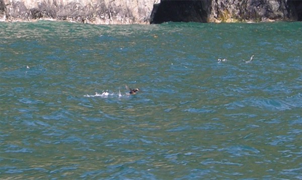 Puffins on the way back from Mears Glacier, sorry the pictures are not good but puffins like lively water: