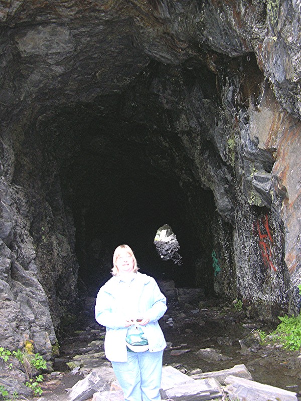 The tunnel with a washed out picture of Diane due to the high contrast between the dark tunnel and the outside light:
