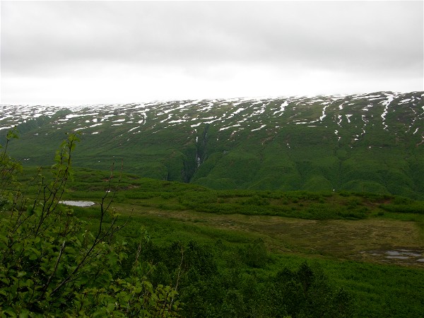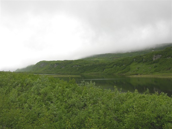 We were told we should have camped at Blueberry Lake campground by someone who had no idea how big our motorhome is. A couple spaces would hold a 30 foot RV, but no way could a 40 foot one fit. Here is Blueberry Lake, just below cloud level and Thompson Pass: