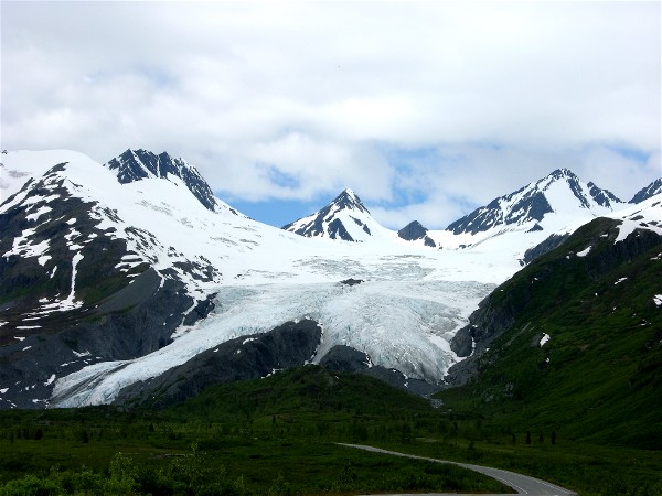Worthington Glacier is visible from the highway: