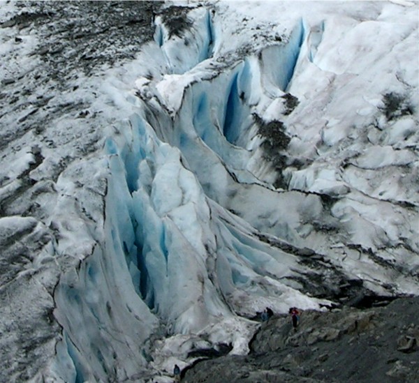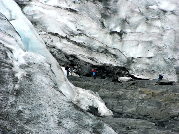 The signs said not to approach the glacier from the front, but these people can't read: