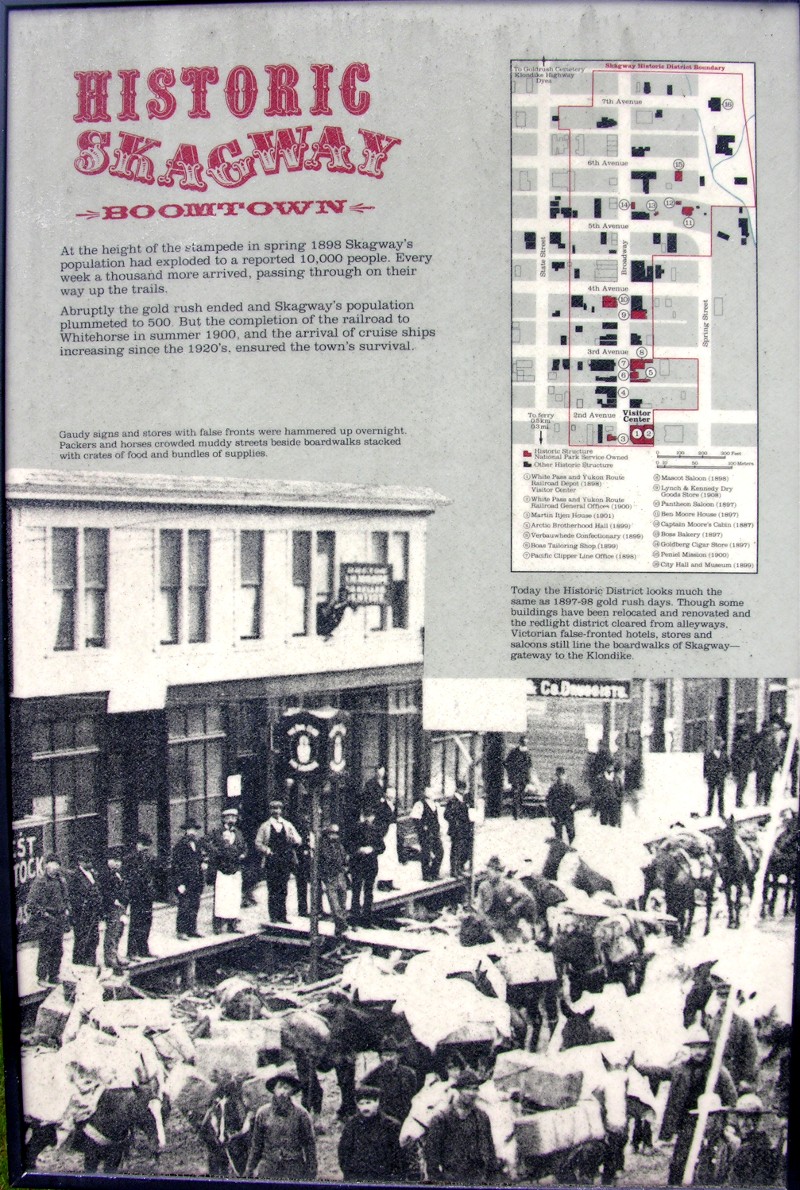 Here is the main shopping street of Skagway, Broadway, looking south to the cruise ships.