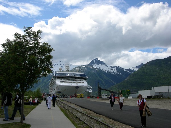While we were calling the wind came up and we had some rain drops, so we were glad we had already played tourist and that the weather was good for pictures from the train and for the first part of our visit to Skagway.