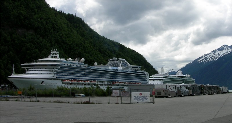 The RVs are waiting to take the ferry, probably only the short run to Haines.