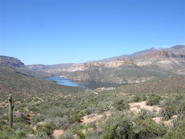 The drive down Lower Fish Creek Hill was easier going this way, we were against the hill instead of next to the cliff. The next viewpoint we stopped was at Apache Lake: