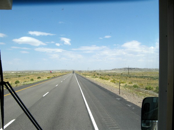 August 26th we drove through southern Wyoming on I-80. The weather was better than when we took this trip in 2002. This is how the road looked: