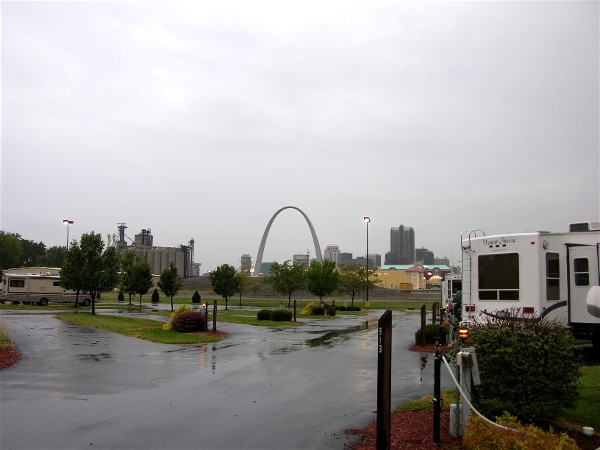 The campground is just over the Mississippi River from Saint Louis, MO and the Gateway Arch is visible from our campsite:
