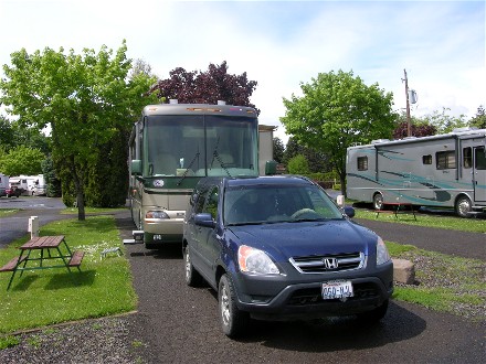April 30th we drove 310 miles up through Klamath Falls, OR and over the Cascade Mountains to Eugene Kamping World in Coburg, OR. We last stayed here April of 2005.