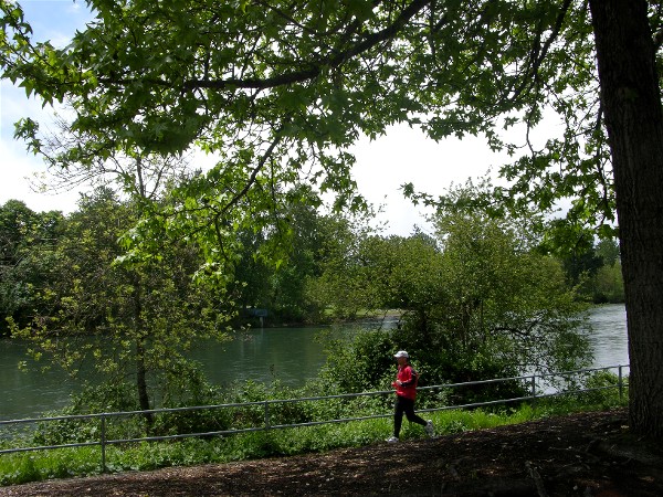We also wanted to be ahead of the cooler weather coming in. We had appointments starting May 2nd, Wednesday, through May 4th at 8AM. While at these appointments we had to take Evita with us in the car. The appointment on the 2nd was at Cummins to do annual maintenance on the engine and chassis and to fix an air leak. We started the day visiting Three Rivers Mall where there is a nice trail on the river: