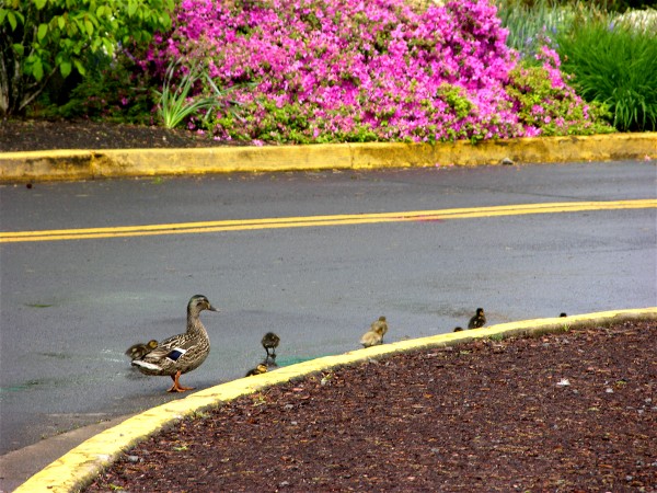 Momma duck finally moved the chicks back to the other side where there was a low entrance the chicks could use:
