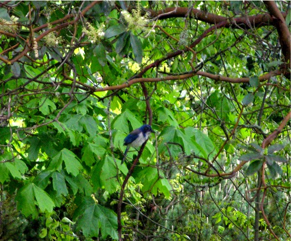 Close up of the scrub jay in this photo. First scrub jay we had seen north of California: