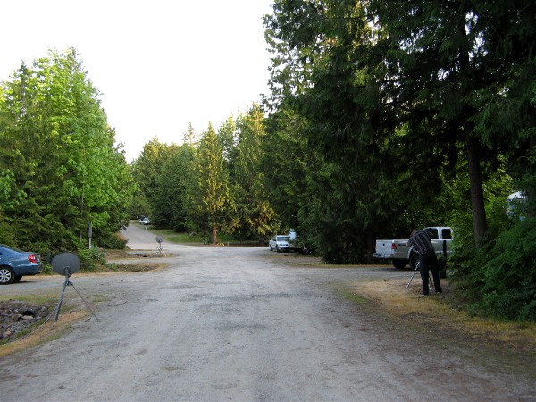 Satellite dishes on the side of the roads since the campsites have trees in them: