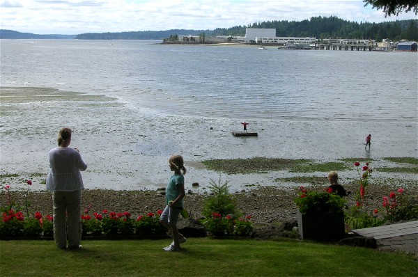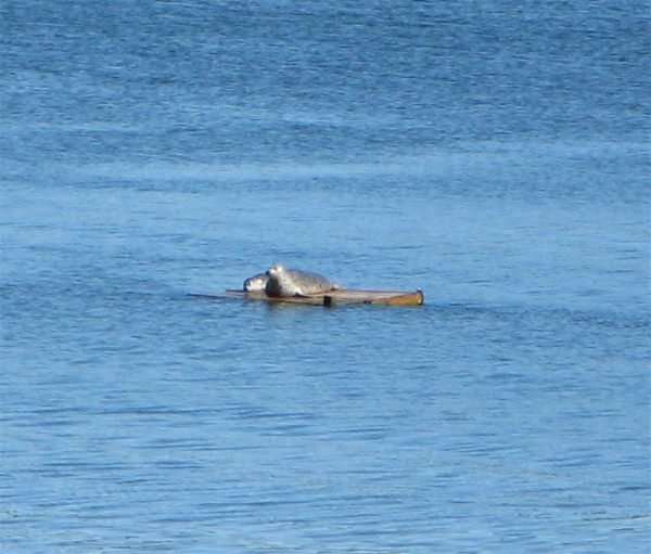 Kayakers trying to get close to the seals, which leaped off the raft soon after the photo was taken: