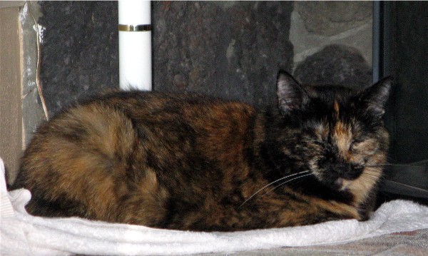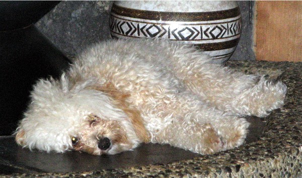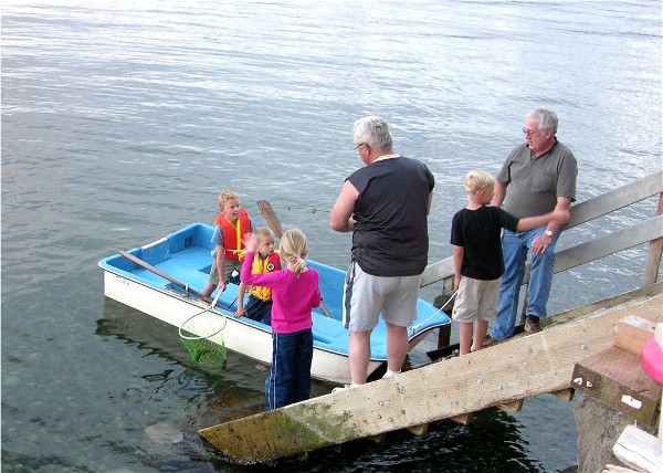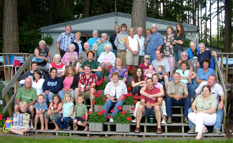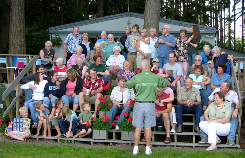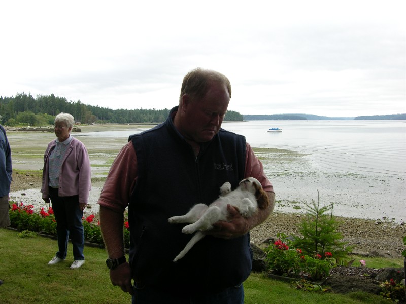 Shelby, her grandfather and new puppy Lily by the porta potty that is needed to handle so many people for the weekend. Lily was a big hit at the family gathering.
