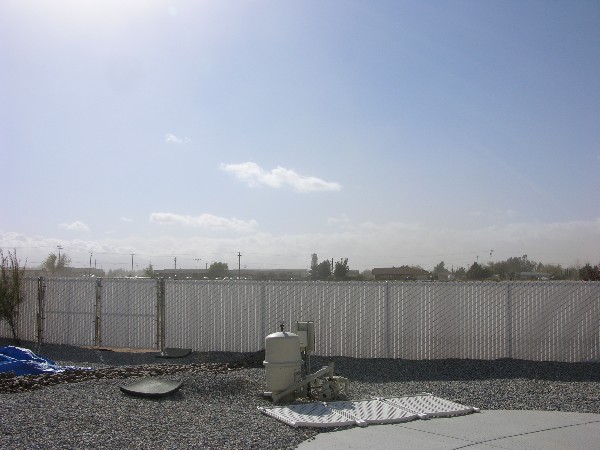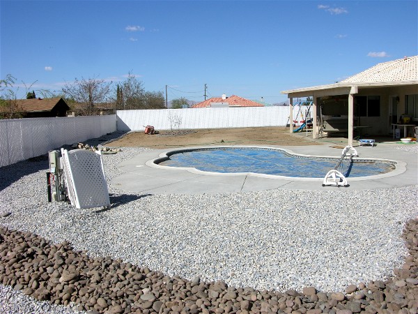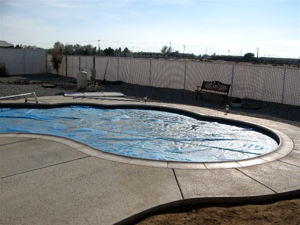 April 1 the weather was hot, 86 degrees, so the pool cover came off and was cleaned while the girls tried to swim. The water was still cold so they didn't swim long. Bill was washing the dust off the motorhome so he didn't get a picture with the pool cover off: