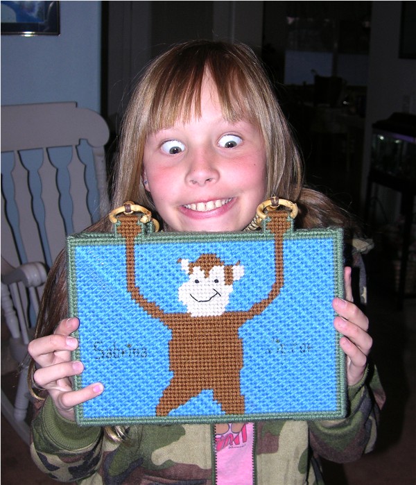 Diane finished a tote for Sabrina at the end of our stay. Sabrina is of the age where she has to make faces for pictures: