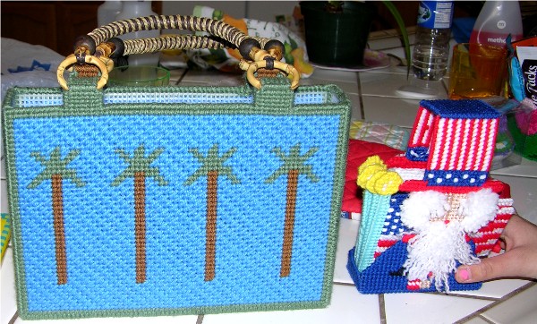 The back of the tote along with the coaster project Diane and the girls worked on. Two coasters made by Diane, two by Sabrina and when we left Taylor was almost done with one.