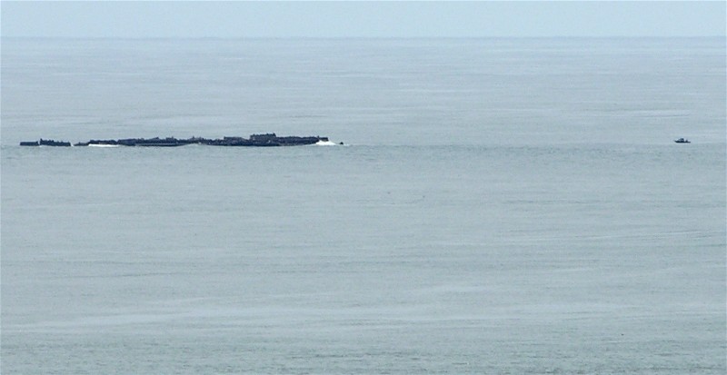 Extreme telephoto of the end of the south jetty. Some of those bumps must be sea lions: