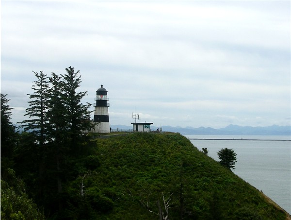The Cape Disappointment Lighthouse is close by. The North Head Lighthouse is not visible but would be behind us. There are two lighthouses since one is visible from the south and one from the north.