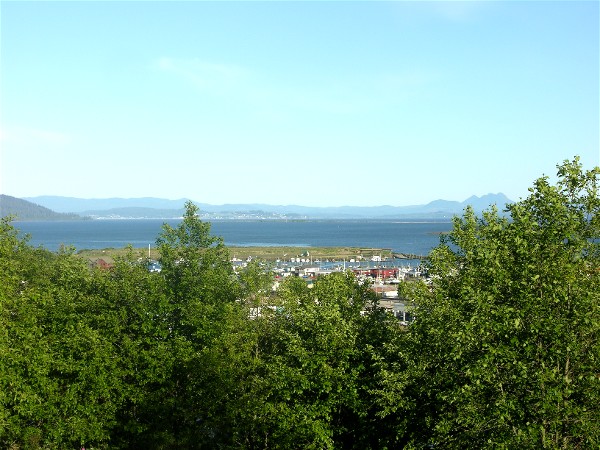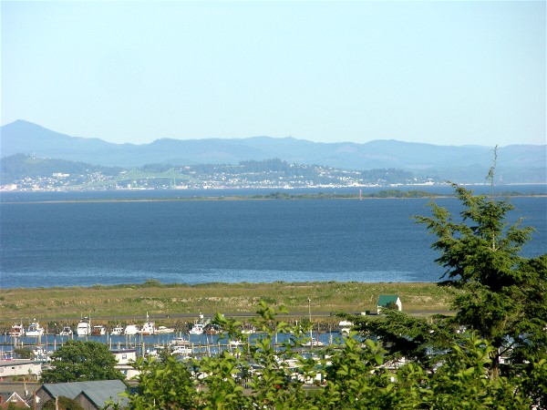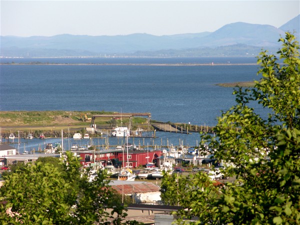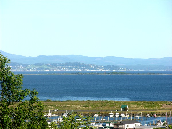 These are the views of Ilwaco and the Columbia River from the deck at Eagle's Nest:
