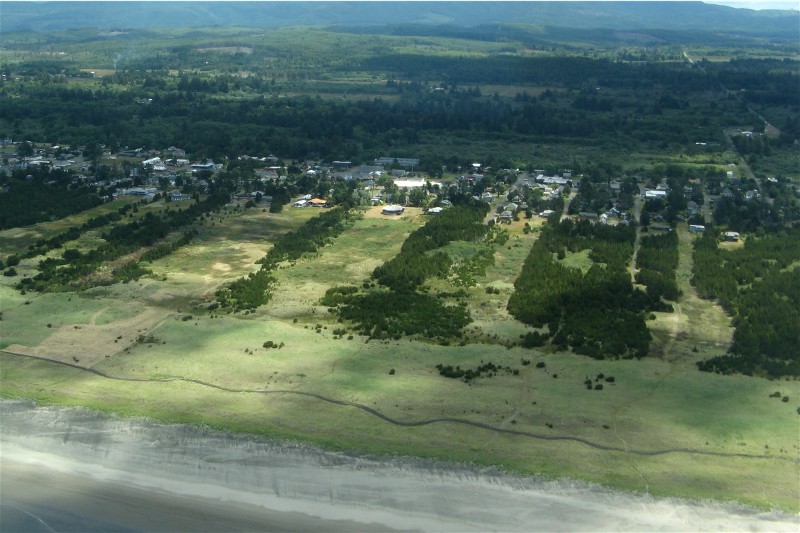 Ilwaco, WA in foreground and the Pacific Ocean in the back: