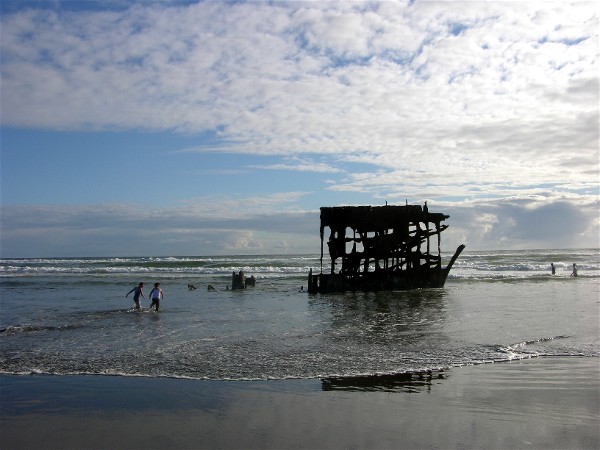 Afterwards we went to dinner in Astoria with Gregg and Rosalie. On the way back to their campsite we went to the beach at Fort Stevens State Park with the Peter Iredale shipwreck: