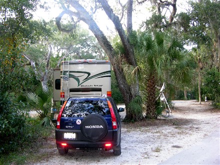 November 19th we drove from Mims to Hanna Park in Jacksonville and the same campsite, #158, we stayed in during November 2005. The trip was 139 miles. We were in town for two weeks, mostly to visit with our good friends Ken and Carolle, including for Thanksgiving.