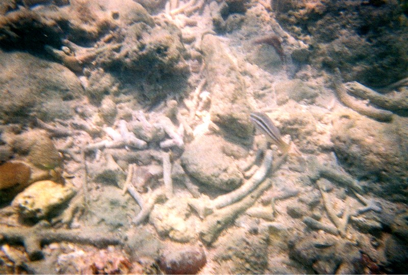 Coral pieces with a fish in the lower right: