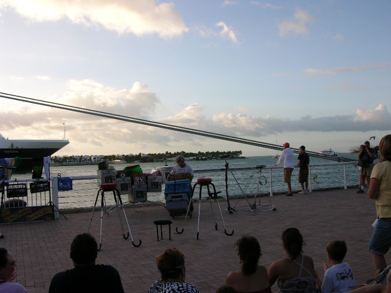 Dominique has his cat show going right here. His website is http://www.catmankeywest.com/. We remember Dominique from December 2003. He entertains and hopes you come up and pay him for it and/or buy stuff from him. He does well.