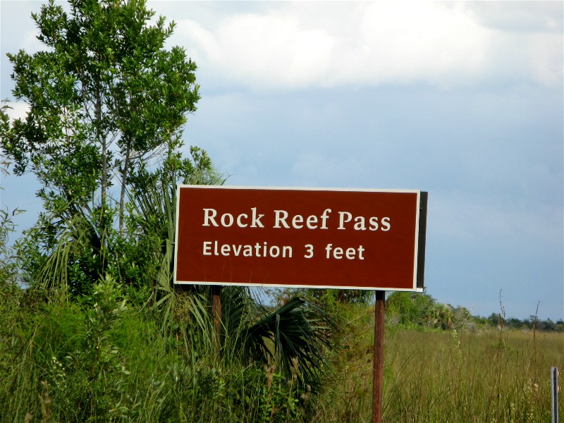 Back across Rock Reef Pass. You might think this is a joke, but this is the ridgeline between the Gulf side of Florida and the Atlantic side and is only 3 feet in elevation. It will not take much rise in sea level to flood the Everglades.