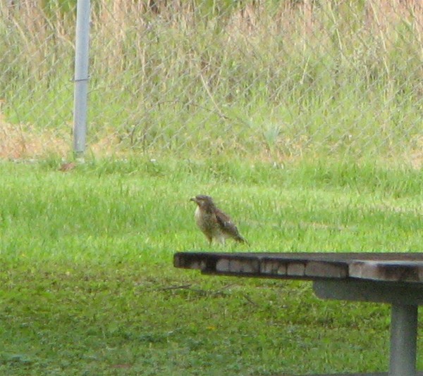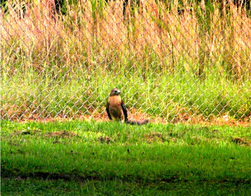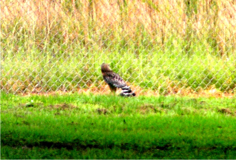 Bill got the Canon A710IS camera out of the car and got this photo before the hawk took off. These colors are more authentic. From the size and colors we think it was a Red-shouldered hawk.