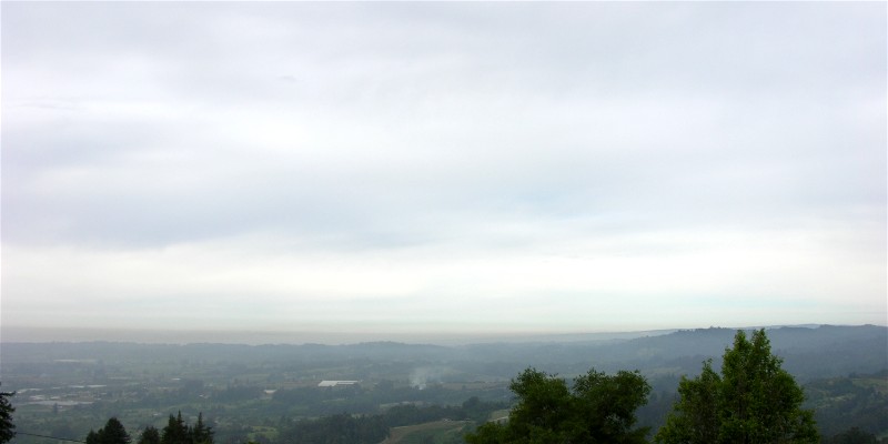 It was supposed to be a decent day so we drove over Hecker Pass to Monterey. Here is the view from the top of the pass: