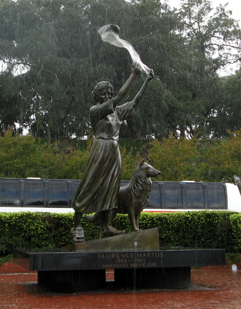 The rains came and went as we toured. Here is the Waving Girl statue in the rain:
