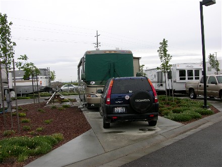 April 21st we left Kimberly's house and drove 161 miles to Lodi, CA and Flag City RV Resort, where we also stayed in April 2006. Here is our campsite this time: