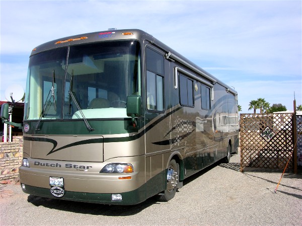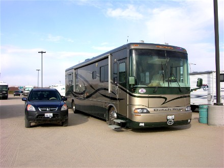 Here we are the morning of the 7th ready to head down the road. We do not have many pictures of the motorhome ready to travel so here is one: