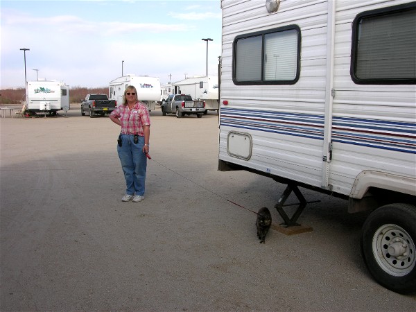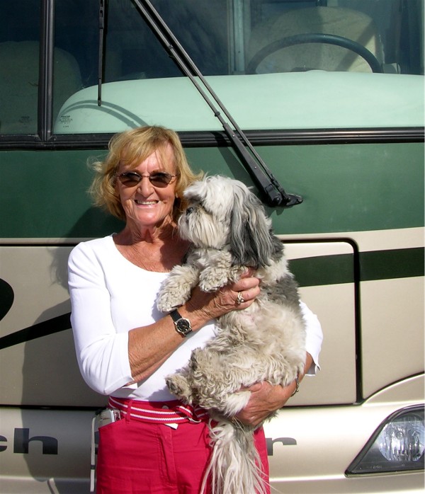 Hila and Triscuit in front of our motorhome. We had a good time with them both.
