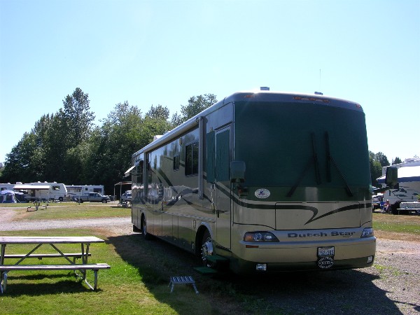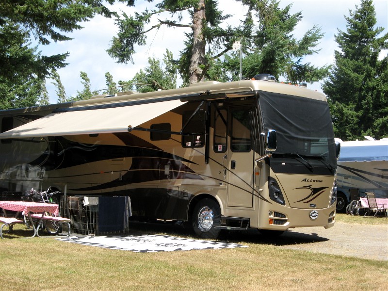 For the first time we saw a Newmar AllStar in a campground here at NACO Birch Bay. Mostly these sell to people who do not seem to use campgrounds, so it was nice to actually see someone have one in a campground.