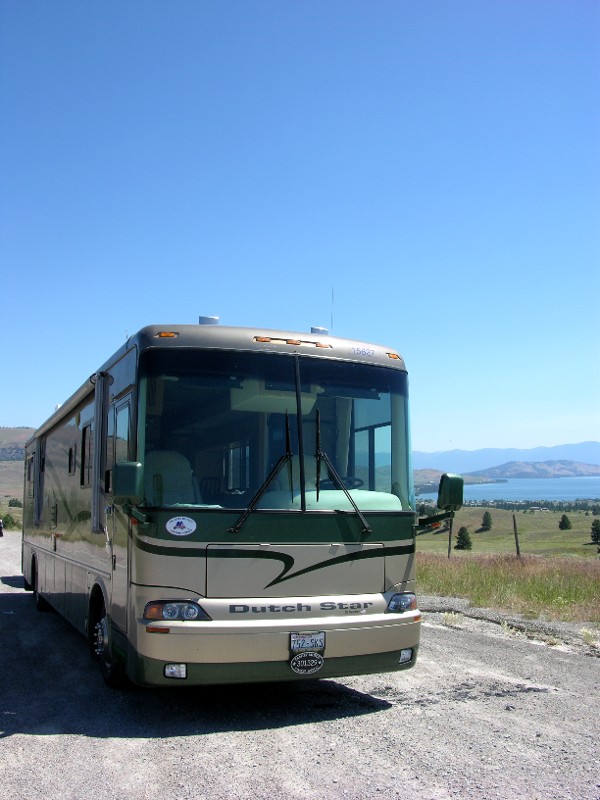 We headed out of Hungry Horse on July 13th and traveled west. We stopped for lunch at this viewpoint looking down at Flathead Lake and Elmo, Montana: