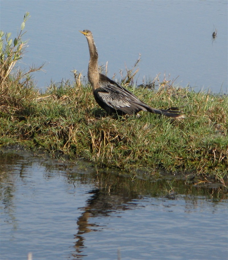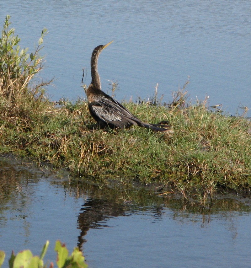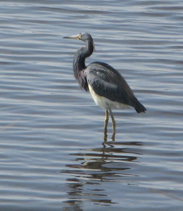 A snowy egret and white ibis seemed to be pals since they were following each other around and taking turns checking for food.