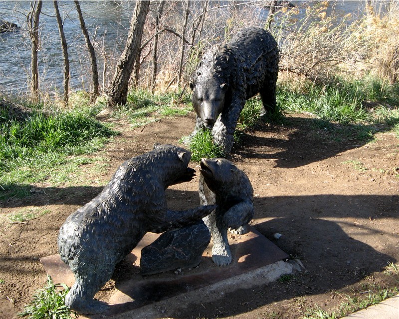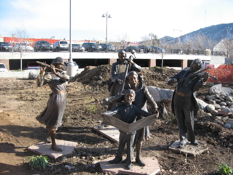 Now we are on the south side of the creek heading west. Here is a closer look at the musician's statues: