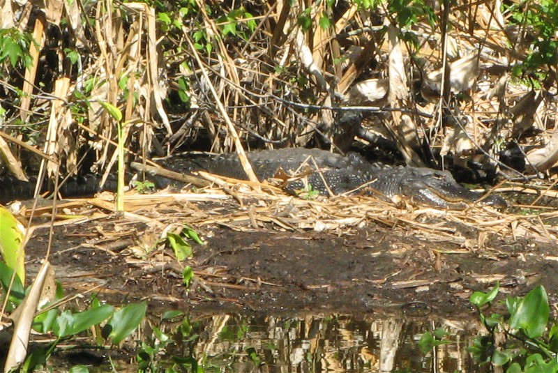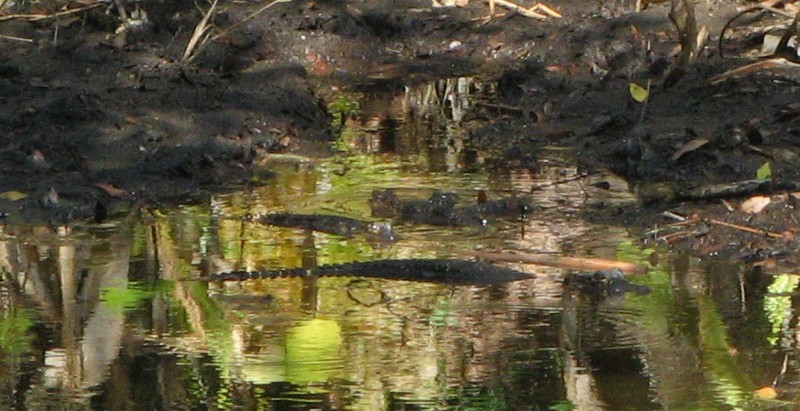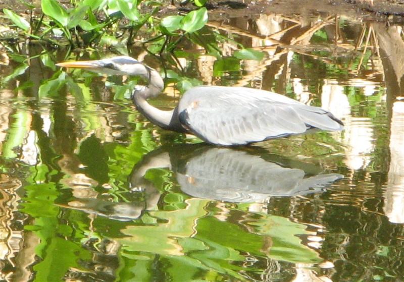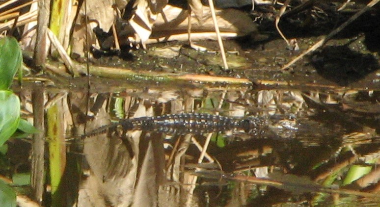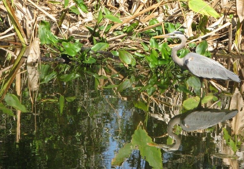 The young gators and the great blue heron. One of the young gators actually nipped at the heron and made it go away.
