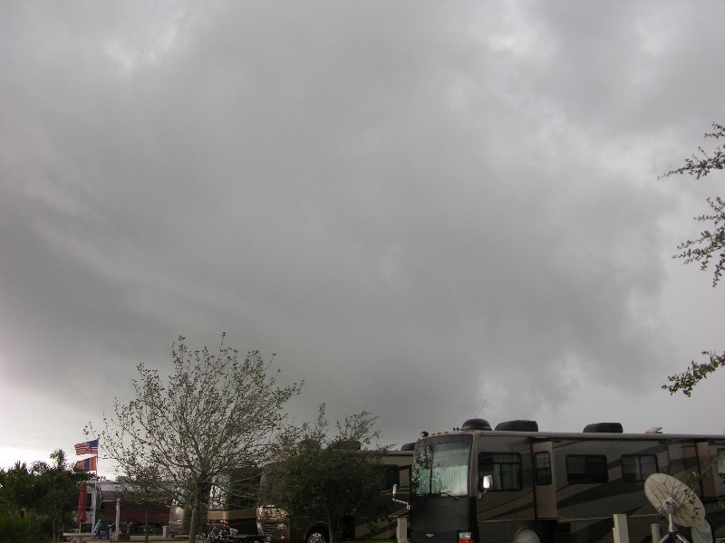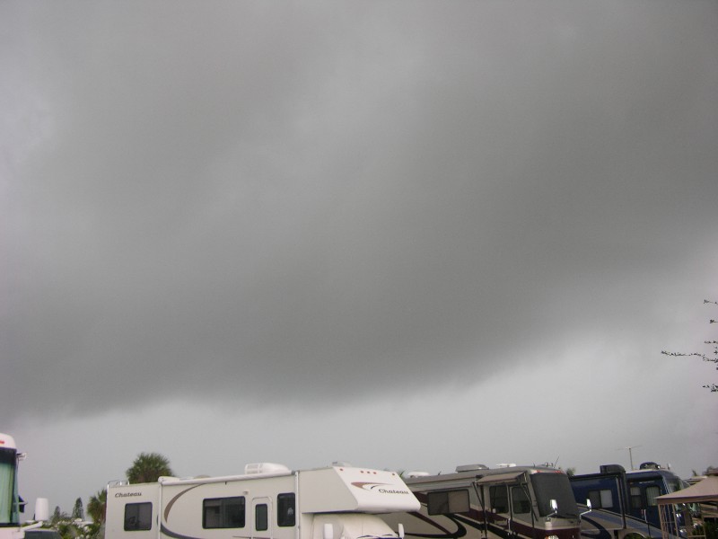 February 12th was a stormy day but we thought it was over by the morning of the 13th. Then we looked out and saw some scary looking clouds. By the time Bill got his shoes on, grabbed the camera and went outside the clouds had already become less defined and not as scary.