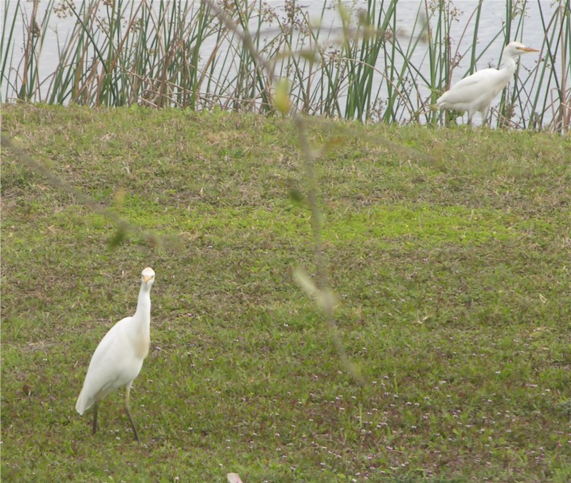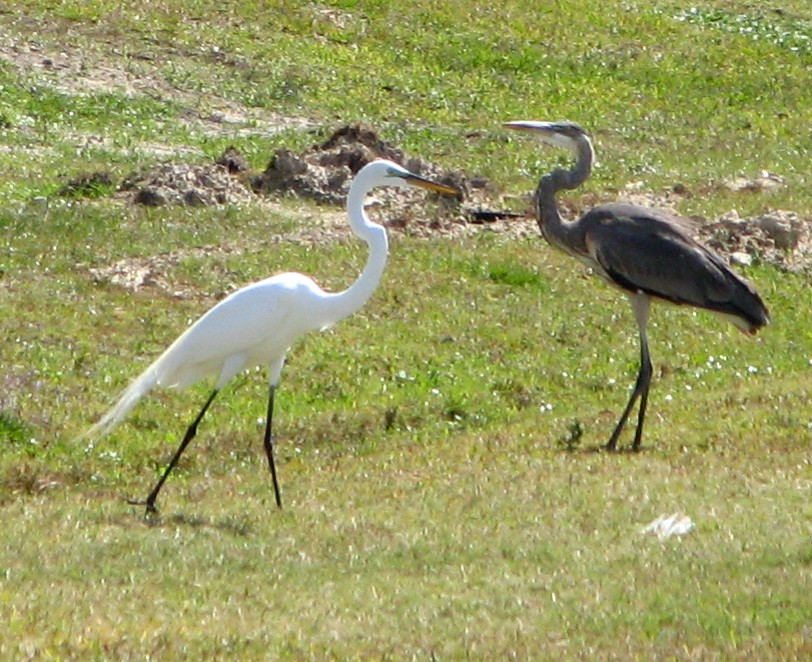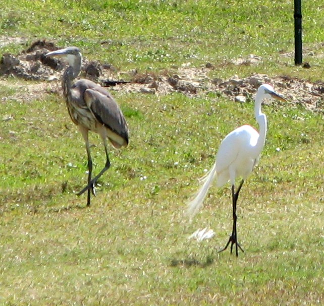 There is one very large great egret here, which is about the size of a great blue heron as you can see from these photos:
