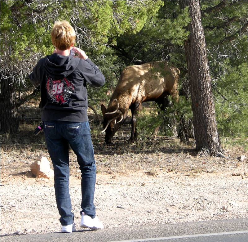 A bull elk caused a wildlife jam. This is the end of the rutting season so bull elks can be unpredictable.