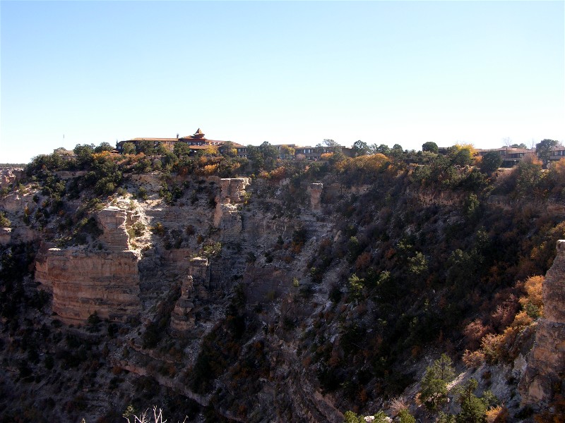 We decided that even though the Hermit's Rest Road was closed we could hike to the viewpoint that was open. Here is a view looking back at the Bright Angel Lodge: